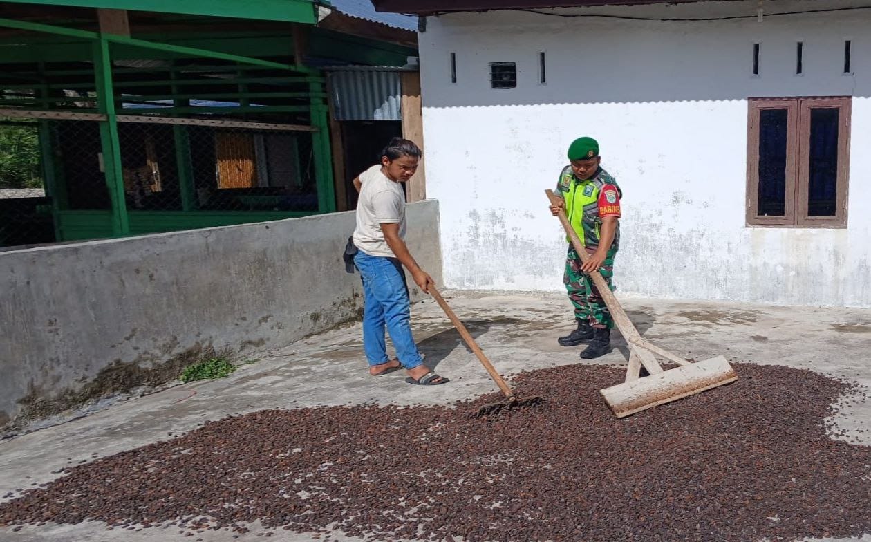 Babinsa Koramil 0108-05/Lawe Alas Laksanakan Pendampingan Warga Desa Binaan Jemur Kakao/Coklat