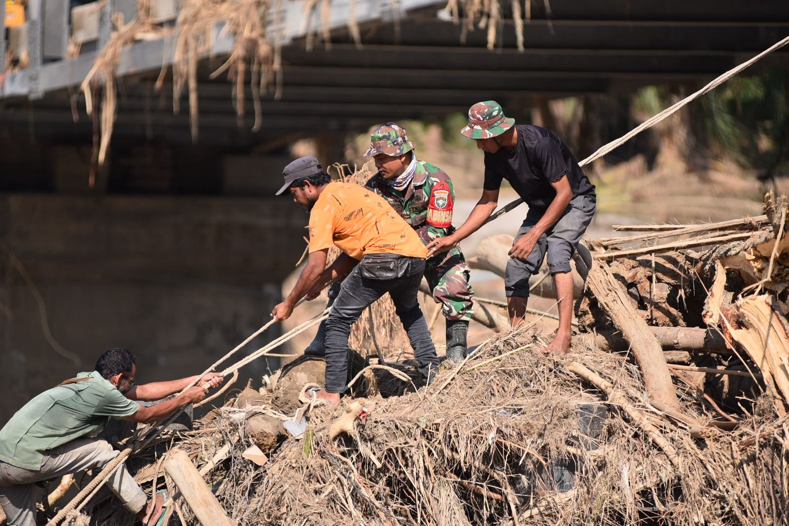Material banjir berupa kayu, lumpur, dan bebatuan masih memenuhi alur sungai, membuat proses penyeberangan berisiko tinggi. Sertu Edi memprioritaskan kelompok rentan—seperti anak-anak, lansia, dan perempuan—untuk memastikan mereka dapat menyeberang dengan aman.