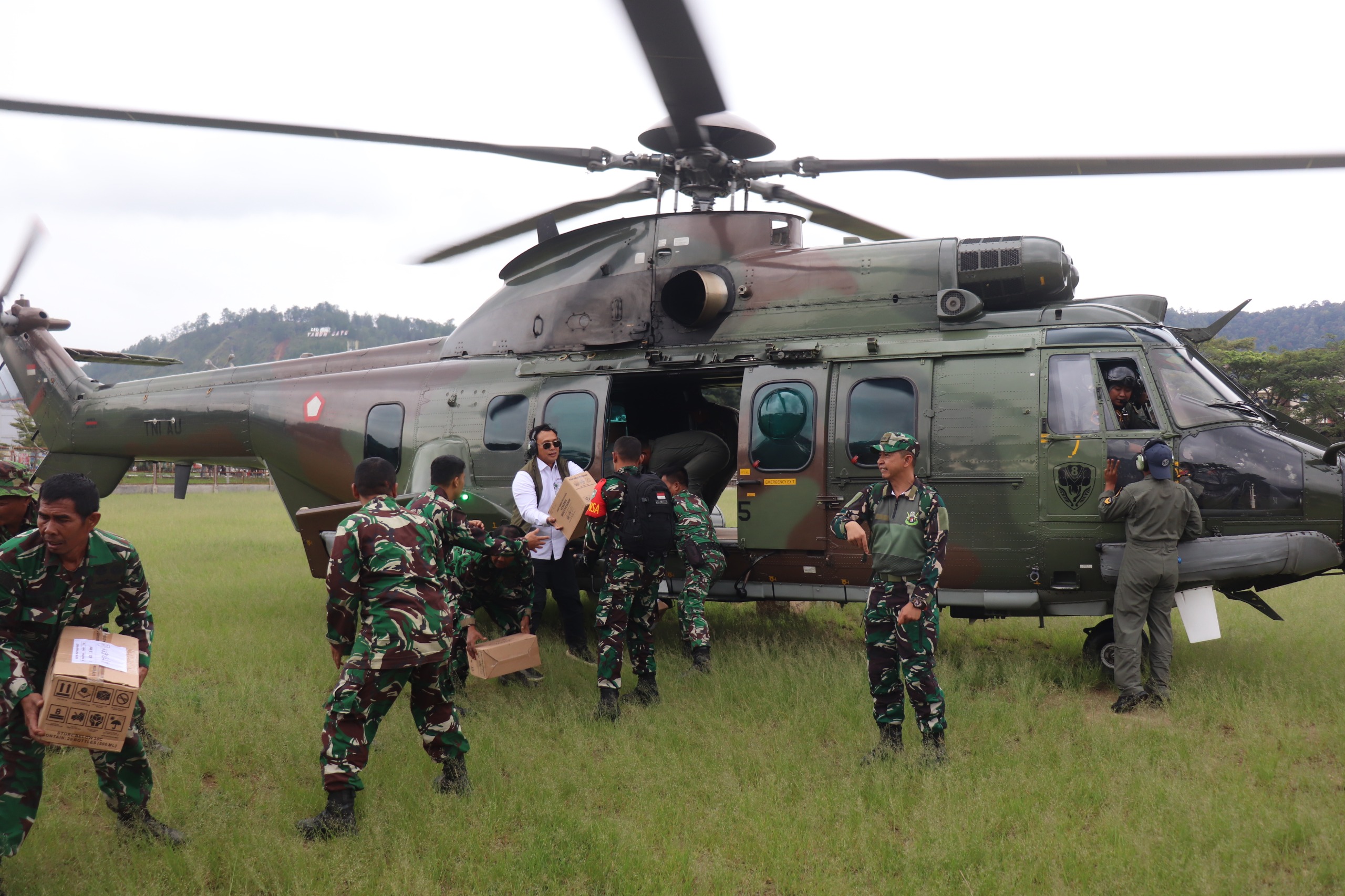 Takengon – Kodim 0106/Aceh Tengah menerima Logistik dari Kodam Iskandar Muda melalui Pusat Penerbangan Angkatan Darat (Puspenerbad) untuk dukungan penanggulangan bencana di wilayah Aceh Tengah dan melaksanakan misi distribusi logistik darurat untuk warga yang terisolasi akibat dampak bencana banjir bandang di lapangan Musara alun Blang kolak 2 Takengon Aceh Tengah.