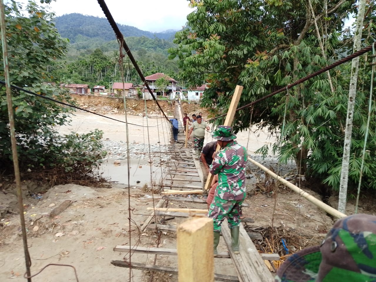 Danposramil Darul Hasanah, Peltu Dedi Cahyadi, menjelaskan bahwa kegiatan ini dilaksanakan sebagai bentuk kepedulian TNI terhadap keselamatan masyarakat. Menurutnya, perbaikan jembatan gantung bertujuan untuk memastikan fasilitas penghubung tersebut kembali aman, layak, dan dapat digunakan oleh warga tanpa menimbulkan risiko kecelakaan.