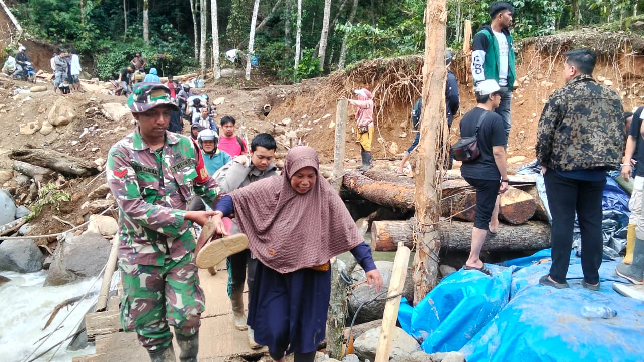 Dikatakan Danramil” Jembatan darurat tersebut dibangun sebagai akses sementara akibat rusaknya jembatan utama yang terdampak bencana tanah longsor dan banjir bandang.