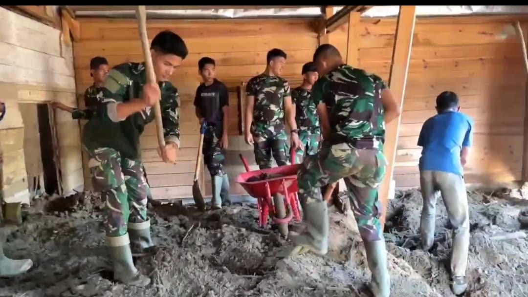 Ia juga menuturkan bahwa selain membantu pembersihan rumah warga, prajurit TNI terus berkoordinasi dengan aparat kewilayahan dan pemerintah setempat untuk memastikan kebutuhan dasar masyarakat terdampak dapat terpenuhi, serta situasi keamanan dan kesehatan lingkungan tetap terjaga.