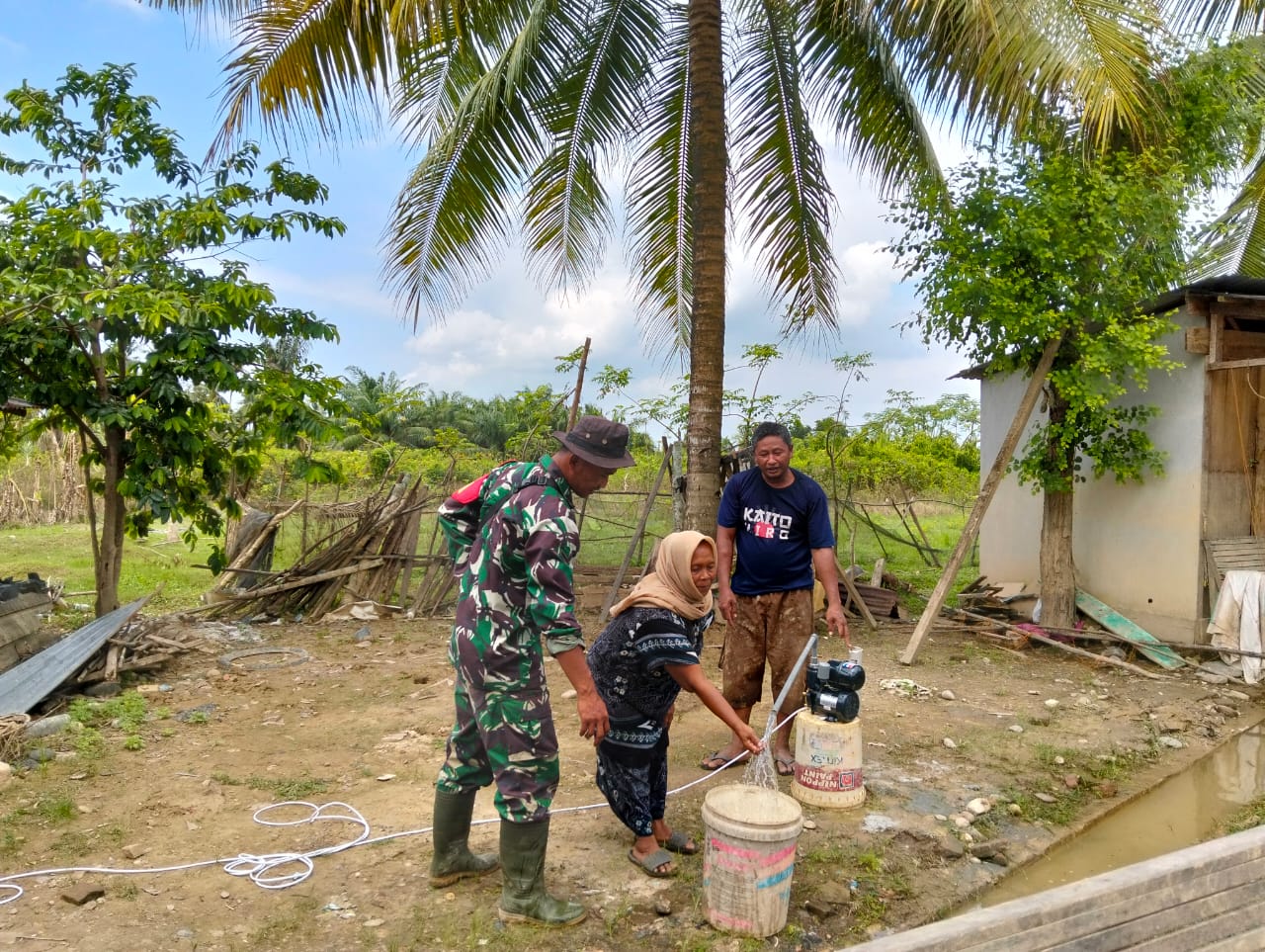 Serda Katiran Babinsa Mengatakan Alhamdulillah Melalui pembuatan sumur bor ini, warga Dusun Mancan Desa Menasyah Paya dan masyarakat sekitar dapat memperoleh akses air bersih yang layak, sehingga kesehatan warga tetap terjaga selama masa pemulihan pascabanjir ini,” ungkap Katiran.