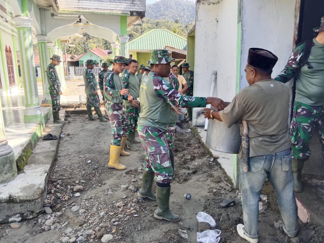Kutacane – Pasca bencana banjir yang melanda wilayah kecamatan ketambe Babinsa bersama warga terus dengam penuh semangat gotong royong mbersihkan masjid Baiturrahim desa lak lak kecamatan Ketambe Kabupaten Aceh Tenggara,Senin (12/01/2026)