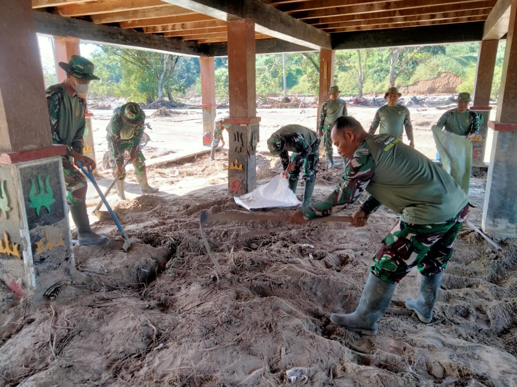 Pasca Banjir, Babinsa Bantu Bersihkan Balai Adat Gayo di Desa Binaan