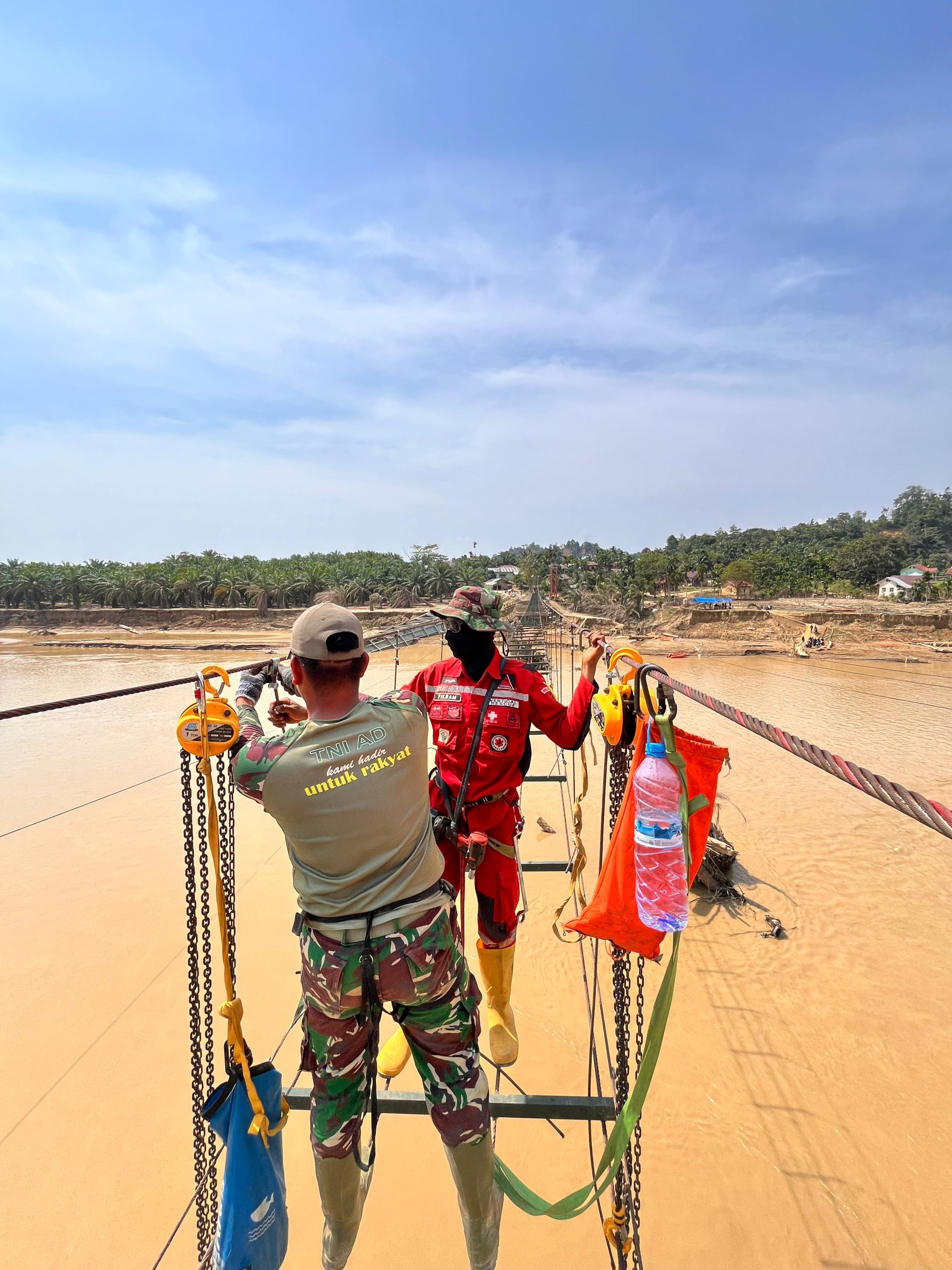 Aceh Tamiang – Semangat gotong royong kembali ditunjukkan melalui kolaborasi antara prajurit Kodam Iskandar Muda dari satuan Kodim 0117/Aceh Tamiang, Brigif 25/Siwah, Tim Vertical Rescue Indonesia, serta masyarakat setempat dalam pembangunan Jembatan Gantung Perintis yang menghubungkan Desa Lubuk Sidup, Kecamatan Sekerak, dengan Desa Aras Sembilan, Kecamatan Bandar Pusaka, Kabupaten Aceh Tamiang. Hingga Jumat (23/1/2026), progres pembangunan jembatan tersebut telah mencapai 49,55 persen.