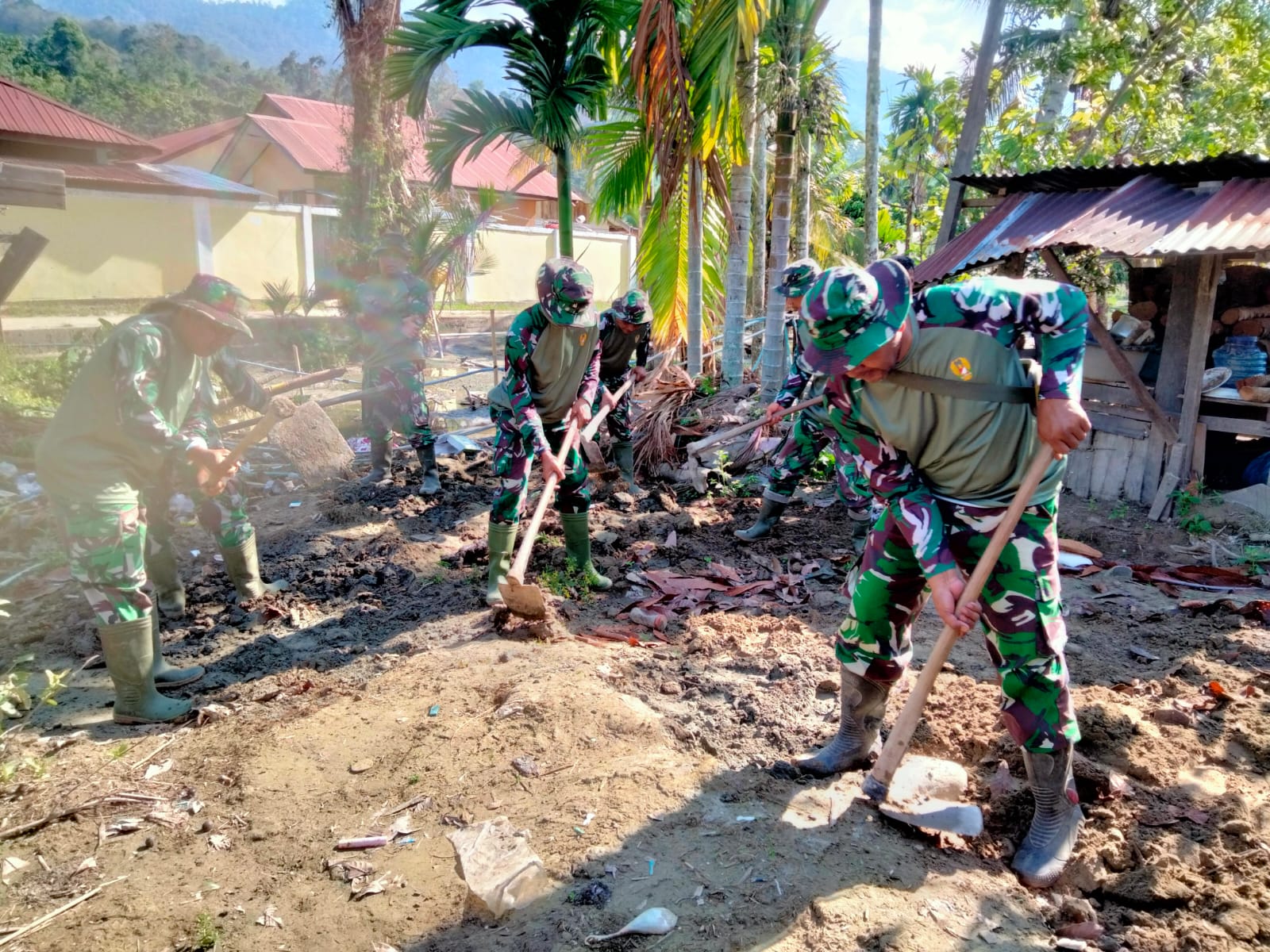 Kutacane – Babinsa Posramil Ketambe jajaran kodim 0108/Agara melaksanakan gotong royong pemulihan pasca bencana dengan membersihkan lingkungan di desa Leuser kecamatan Ketambe kabupaten Aceh Tenggara,Sabtu (31/01/2026