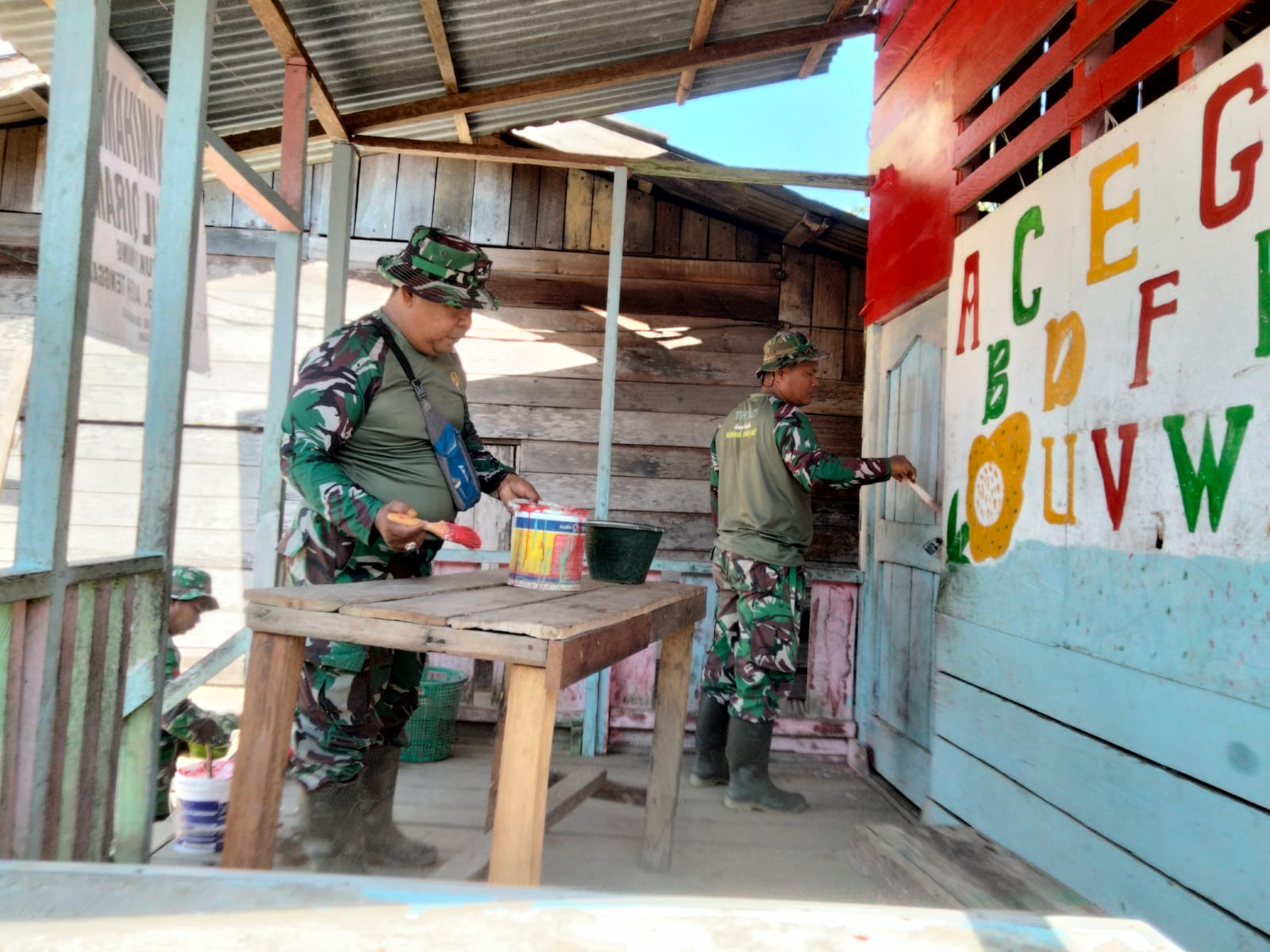 Kami ingin menunjukkan bahwa TNI selalu ada bersama rakyat. Dengan gotong- royong, semua pekerjaan terasa lebih ringan dan cepat selesai,selain itu, kegiatan pengecatan ini bukan hanya sekadar memperindah gedung, tetapi juga menghidupkan kembali semangat saling bantu,kami berharap kebersamaan seperti ini terus terjaga di Kampung Mambesak.