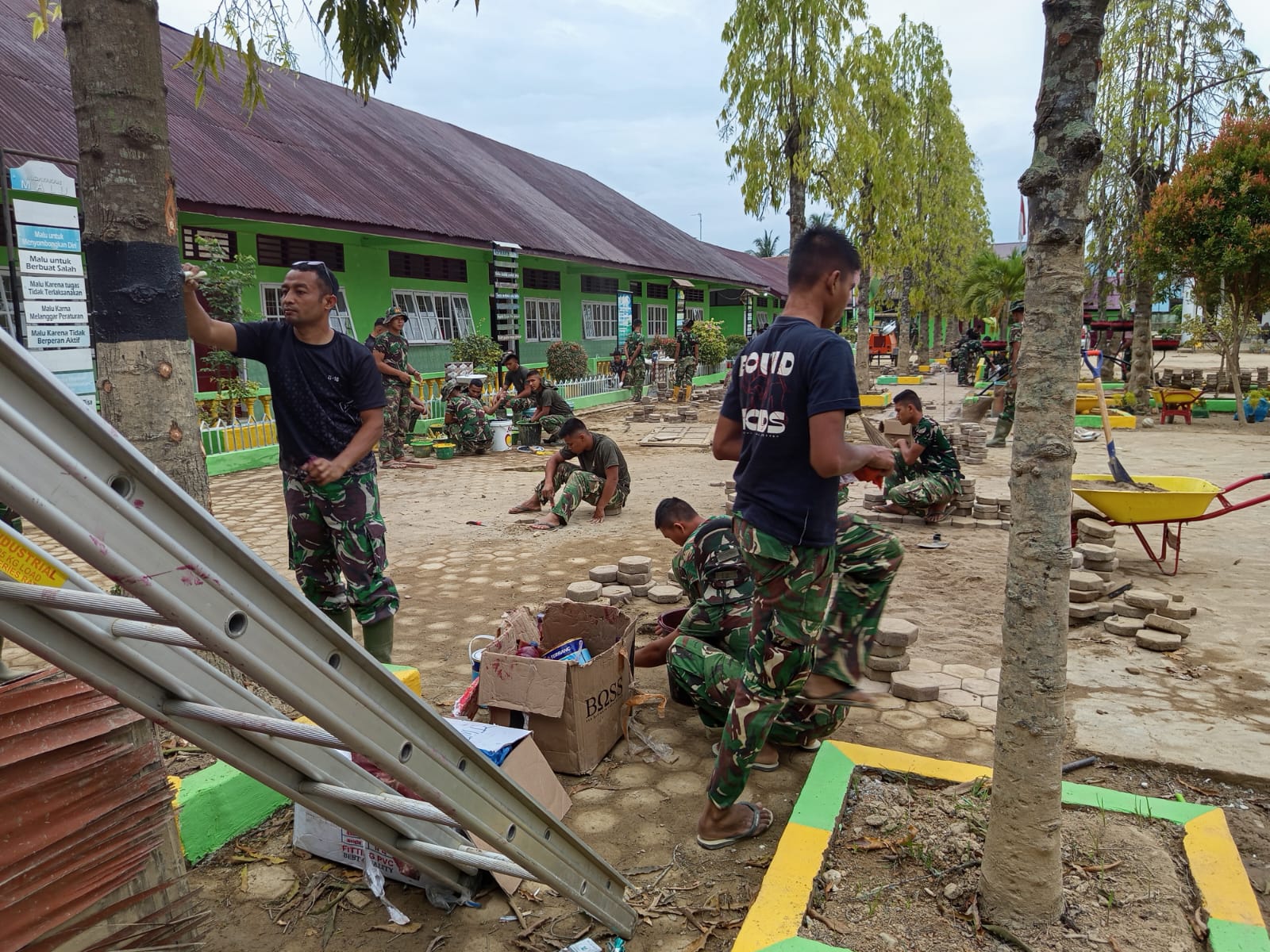 Kerja sama lintas satuan ini dilakukan secara gotong royong dengan semangat kebersamaan. Para prajurit terlihat bahu-membahu menyelesaikan setiap tahapan renovasi, demi memastikan lingkungan sekolah kembali aman dan nyaman bagi guru maupun siswa.