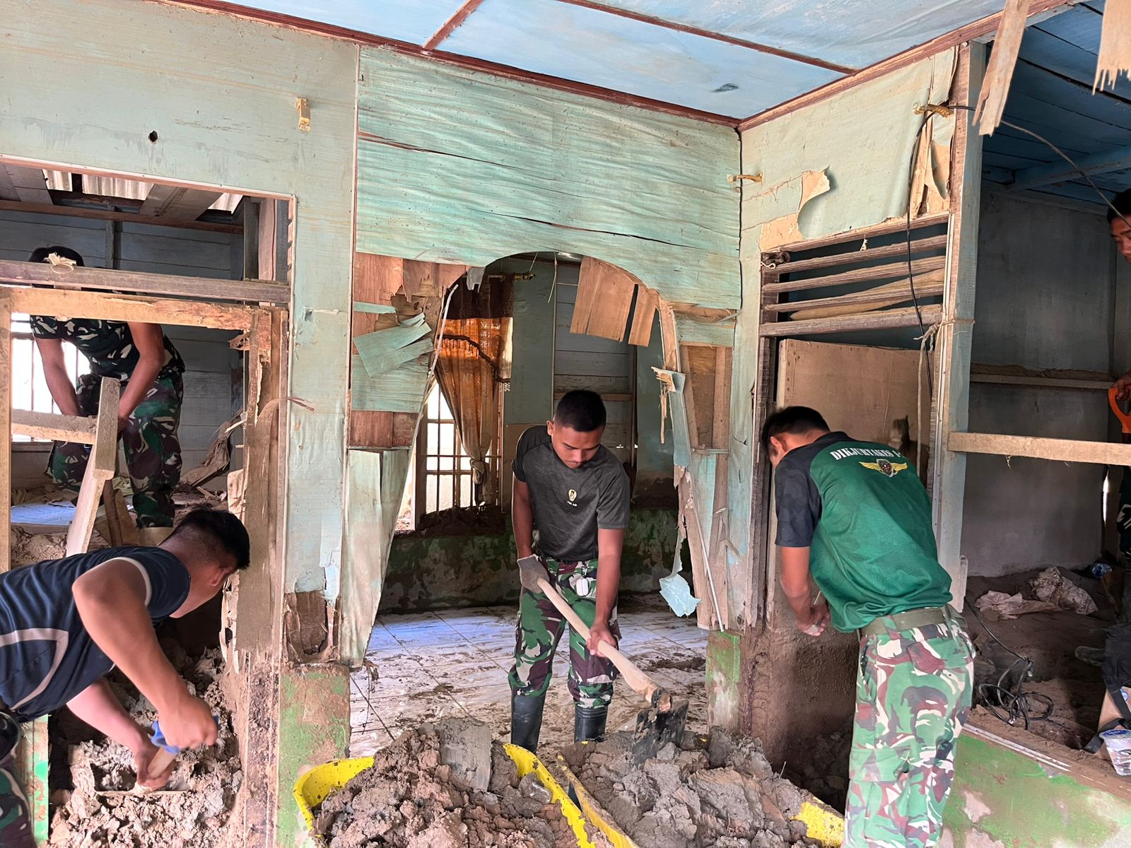 Terus Pulihkan Sekolah Pascabanjir, TNI cat Sekolah Dasar Gelanggang Merak