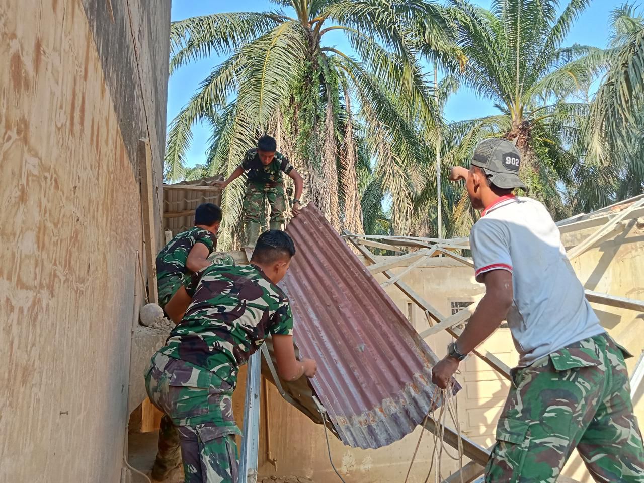 ACEH TAMIANG,MEDIA CENTER DIM 0117/ATAM- Dalam upaya membantu masyarakat yang terdampak bencana banjir, Anggota Koramil 05/Tamiang Hulu turun langsung ke lokasi untuk membantu warga membersihkan puing-puing rumah yang akan roboh di terjang banjir Kegiatan ini dilakukan sebagai respons atas dampak banjir yang melanda Kabupaten Aceh Tamiang, bertempat di Desa Babo, Kecamatan Bandar Pusaka, Kabupaten Aceh Tamiang. Kamis (12/02/2026)