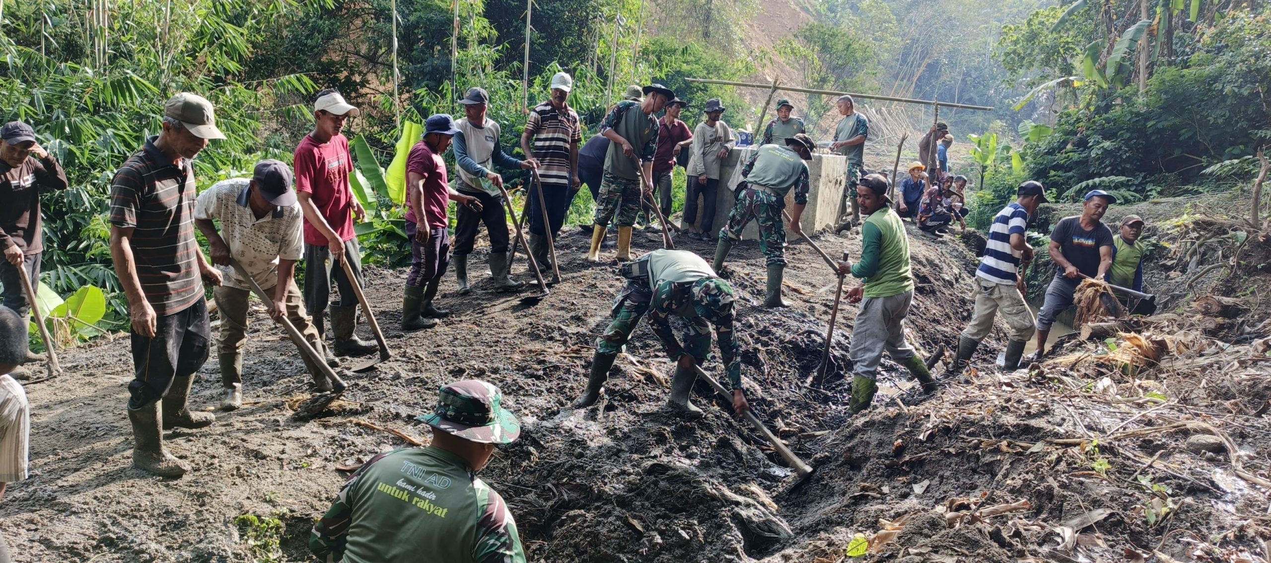 Komandan Koramil 03/TG Kapten Inf Takdir Anur di sela-sela kegiatan gotong royong menyampaikan. Kegiatan ini dilakukan sebagai upaya percepatan pemulihan sarana irigasi yang tertimbun material longsor, sehingga aliran air ke area persawahan warga dapat kembali normal.