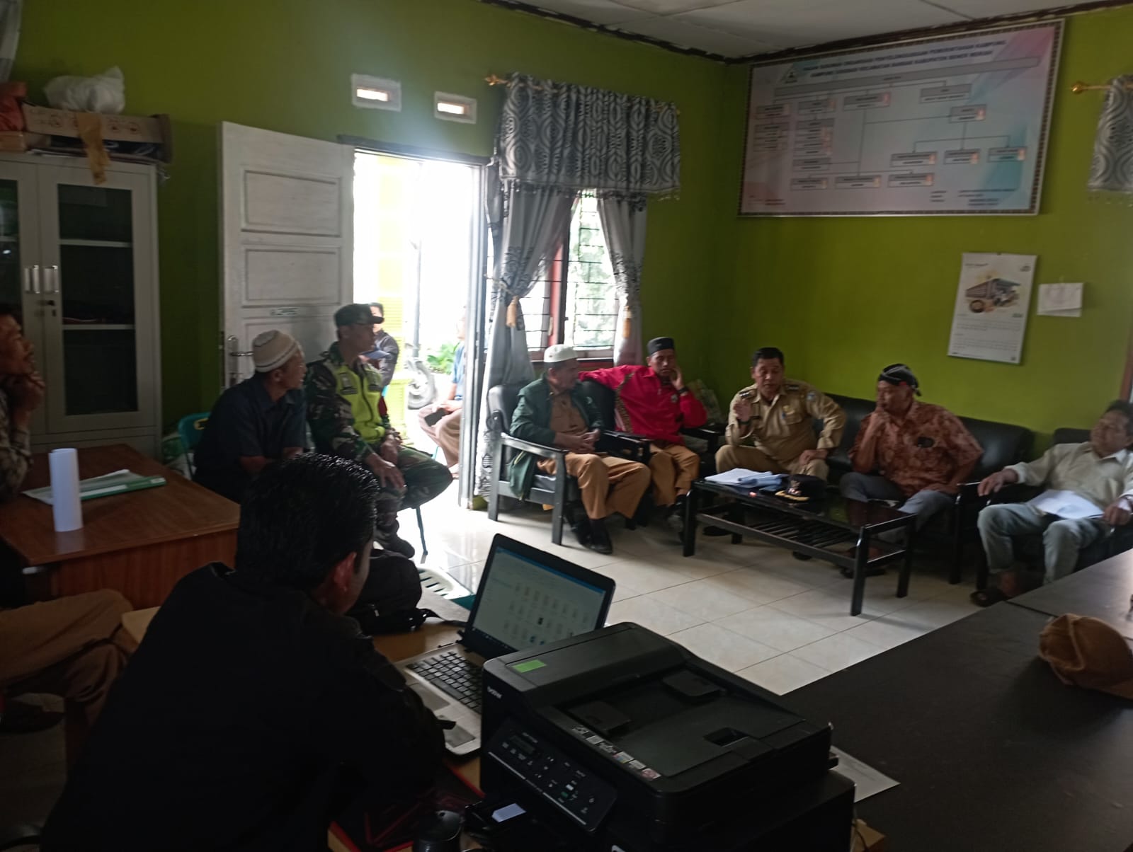 Redelong, Kodim 0119/BM – Menjaga kondusifita di wilayah binaan, Sertu Sugiyanto A Babinsa Koramil 01/Bandar melaksanakan komsos dengan Perangkat Desa bertempat di kantor Desa Sidodadi, Kecamatan Bandar, Kabupaten Bener Meriah, Kamis (05/03/2026).