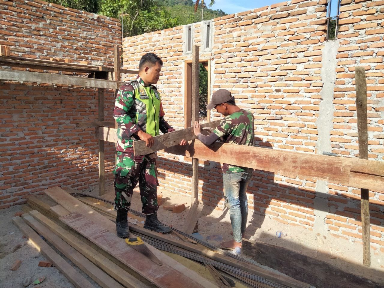 Serda Zulpian menyampaikan,” Sebagai salah satu wujud kemanunggalan TNI dan Rakyat, disamping tugas lainnya, kegiatannya dalam membantu membangun rumah warga ini merupakan salah satu upaya untuk terus menjalin kebersamaan dan kerjasama dengan warga yang ada di wilayah binaan guna untuk meringankan beban warganya.
