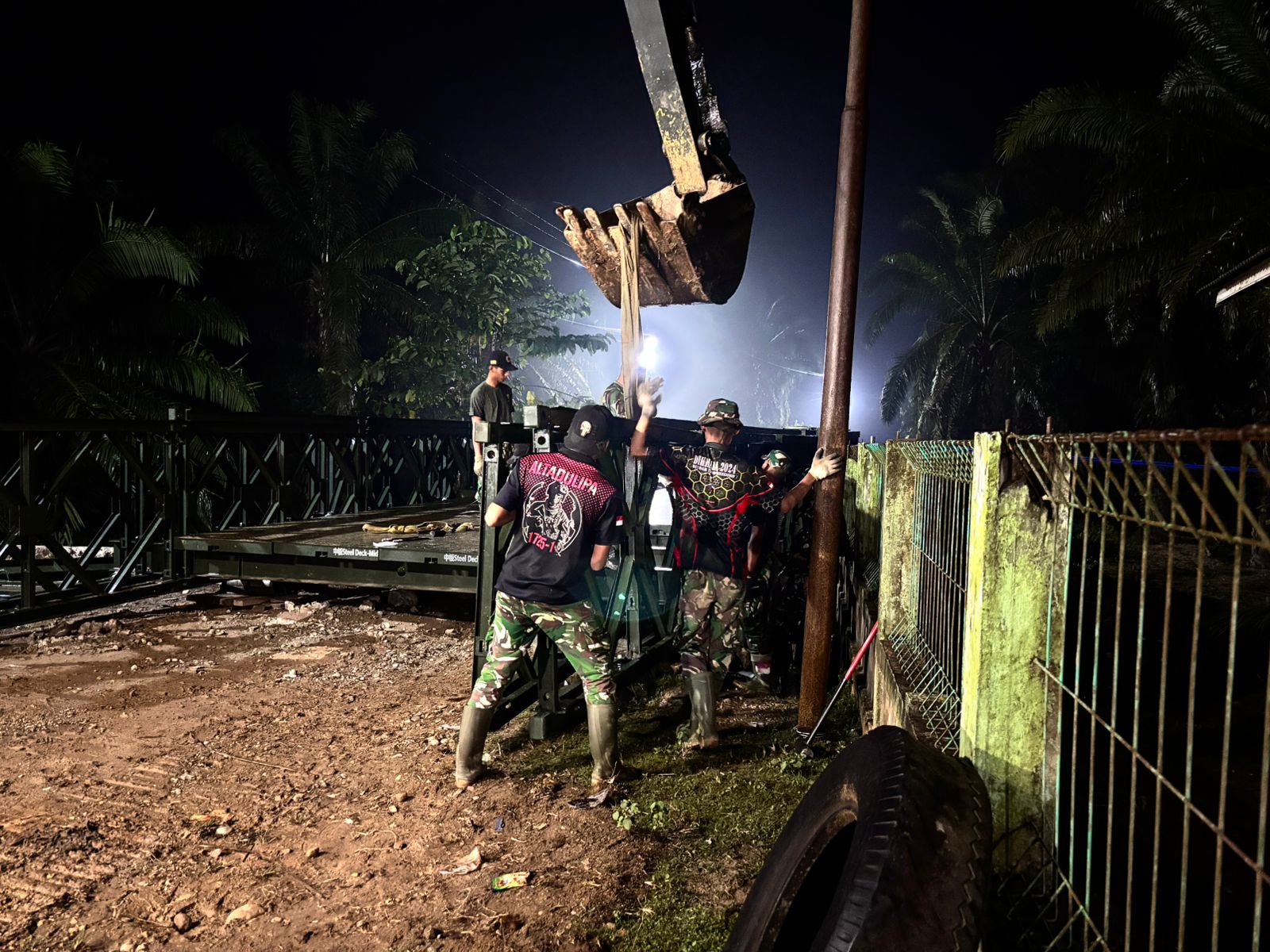 Dengan semangat pengabdian dan kerja keras, para prajurit TNI bekerja tanpa mengenal lelah. Pembangunan jembatan dilakukan secara intensif baik pada siang hari maupun malam hari agar proses penyelesaian dapat berjalan lebih cepat. Upaya ini dilakukan demi memastikan masyarakat dapat segera kembali menikmati akses transportasi yang layak dan aman.